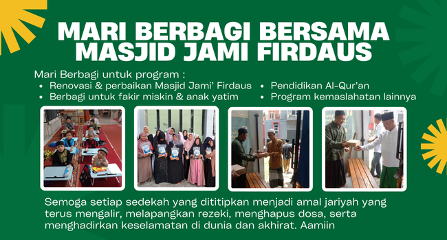 Filter TerbaruTerlamaTerbanyak Bantu renovasi masjid, berbagi fakir miskin & anak yatim, pendidikan alquran dan kemaslahatan ummatMasjid Jami FirdausRp 15.758.583terkumpul I A H 119+∞ Donasi Sekarang Bantu ringankan korban banjir SumateraMasjid Jami FirdausRp 125.149terkumpul Z S ∞ Donasi Sekarang Load more